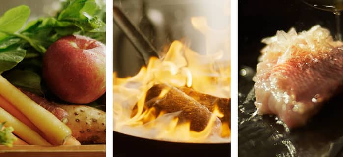 本格フレンチでありながら、日本の四季折々のおいしさも厳選して取り入れた渾身のフルコース。地域の農家の方々とも協力し合い、ロスフードの問題にも取り組みながら、この場所だからこそつくることのできるメニューをご用意しています。「このときしか味わえない」こだわりで、一生に一度の思い出の味を一層鮮やかに。